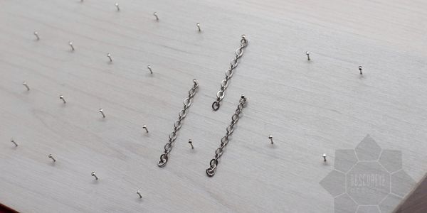 Our pin setting is intended to display almost any length of chain, or any size of charm! These pins are secure in the display and can be set in a variety of patterns to accommodate dangling or draped chains. These pins can be used to hang one end of a chain or a charm, or can be paired for chains to be strung between them.