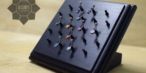 Our scratch-proof clips come in two color options: clear and black. The black clips have a slightly looser hold than the clear, but both can securely hold a wide variety of gauges and sizes. The clips can be rotated to hold circular jewelry, curves, or barbells. We can also pair clips closer together to specifically showcase pairs of nipple jewelry! If you are interested in other clip colors, or VersiClip clips, please notify us when placing your order.